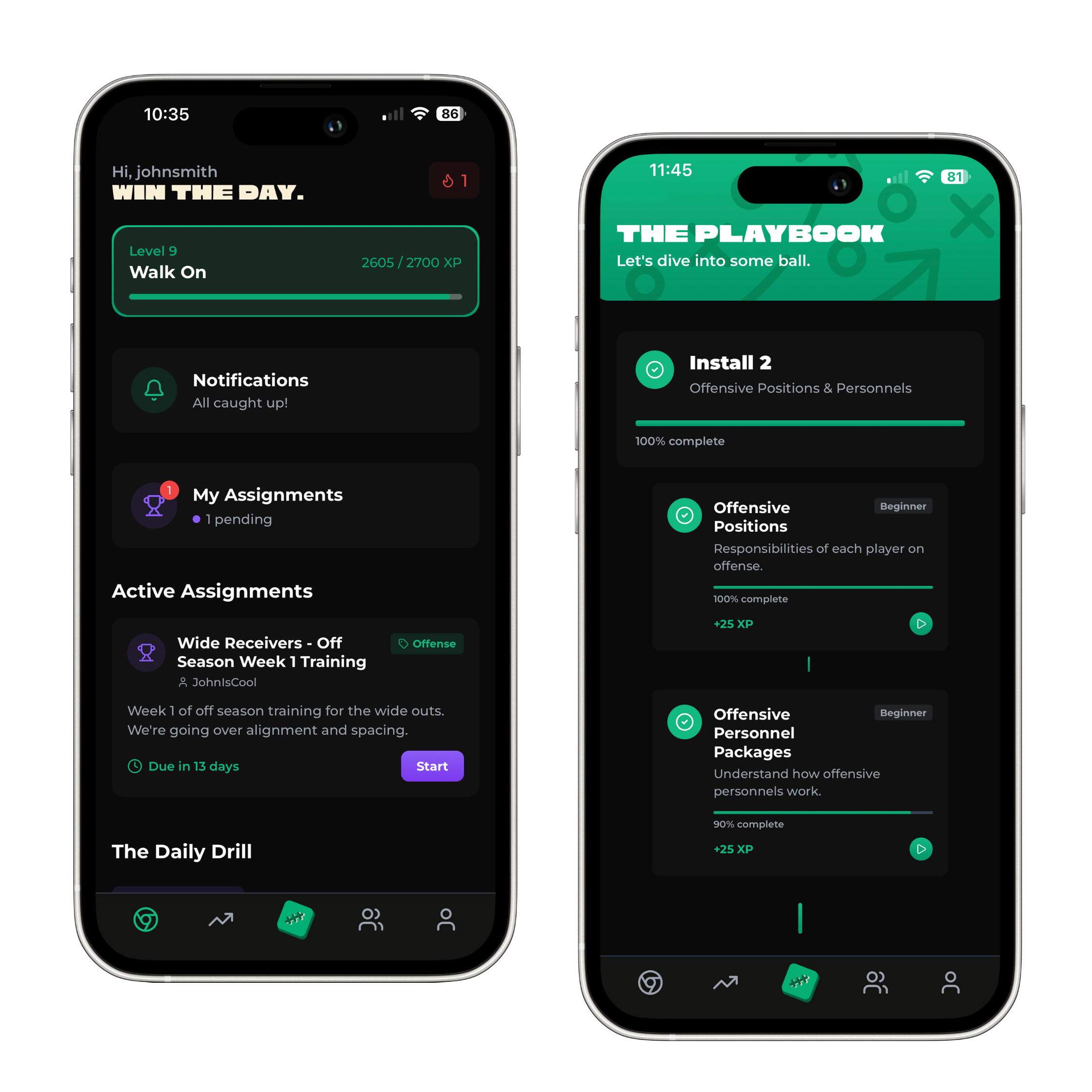 Challenge your friends and teammates to see who understands the game best. Build XP through lessons, Daily Drills, and achievements — then watch your name rise.