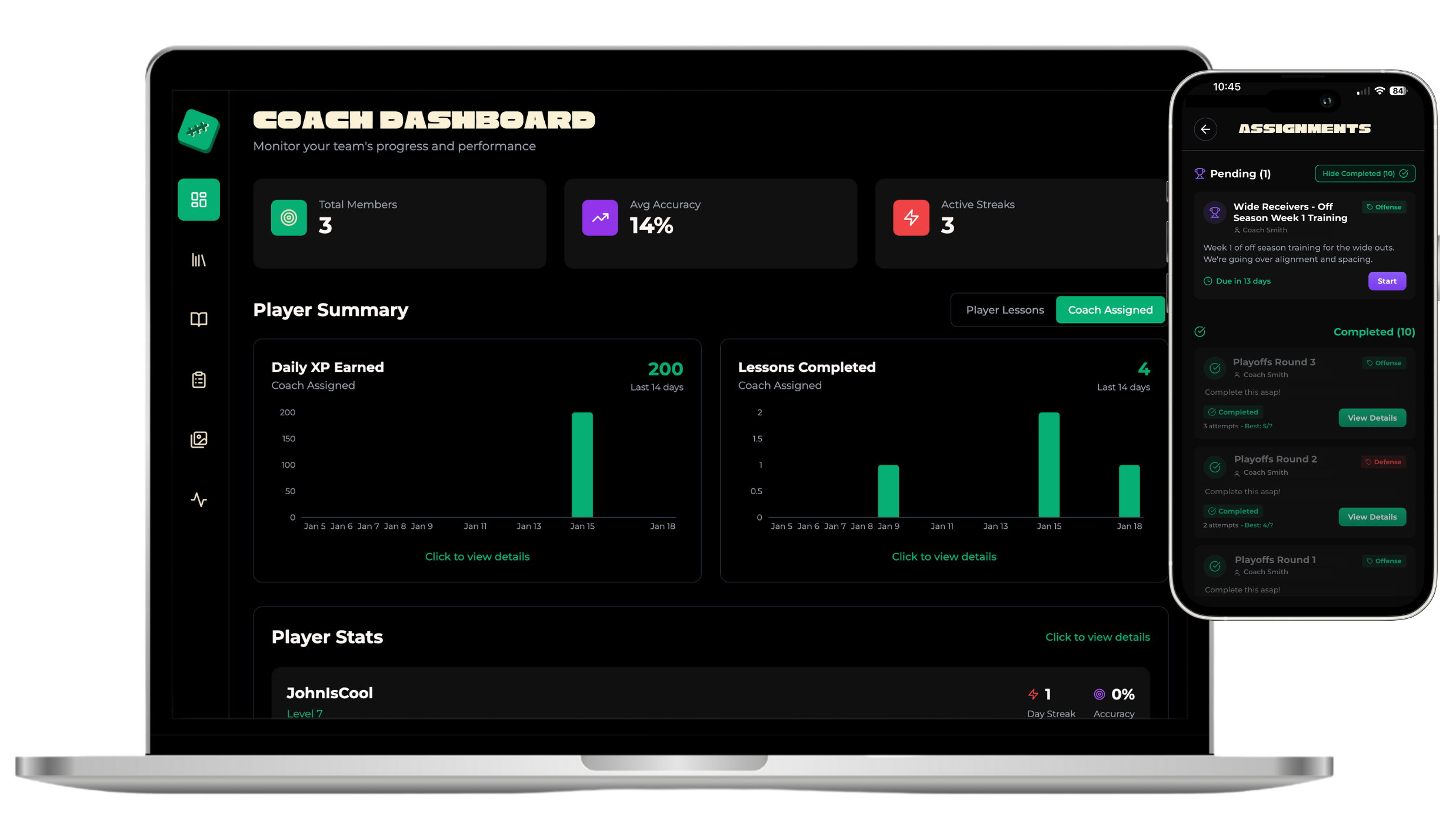Playbooko Coach allows coaches to invite their players to their team where you'll be able to see your teammates' performance as well.